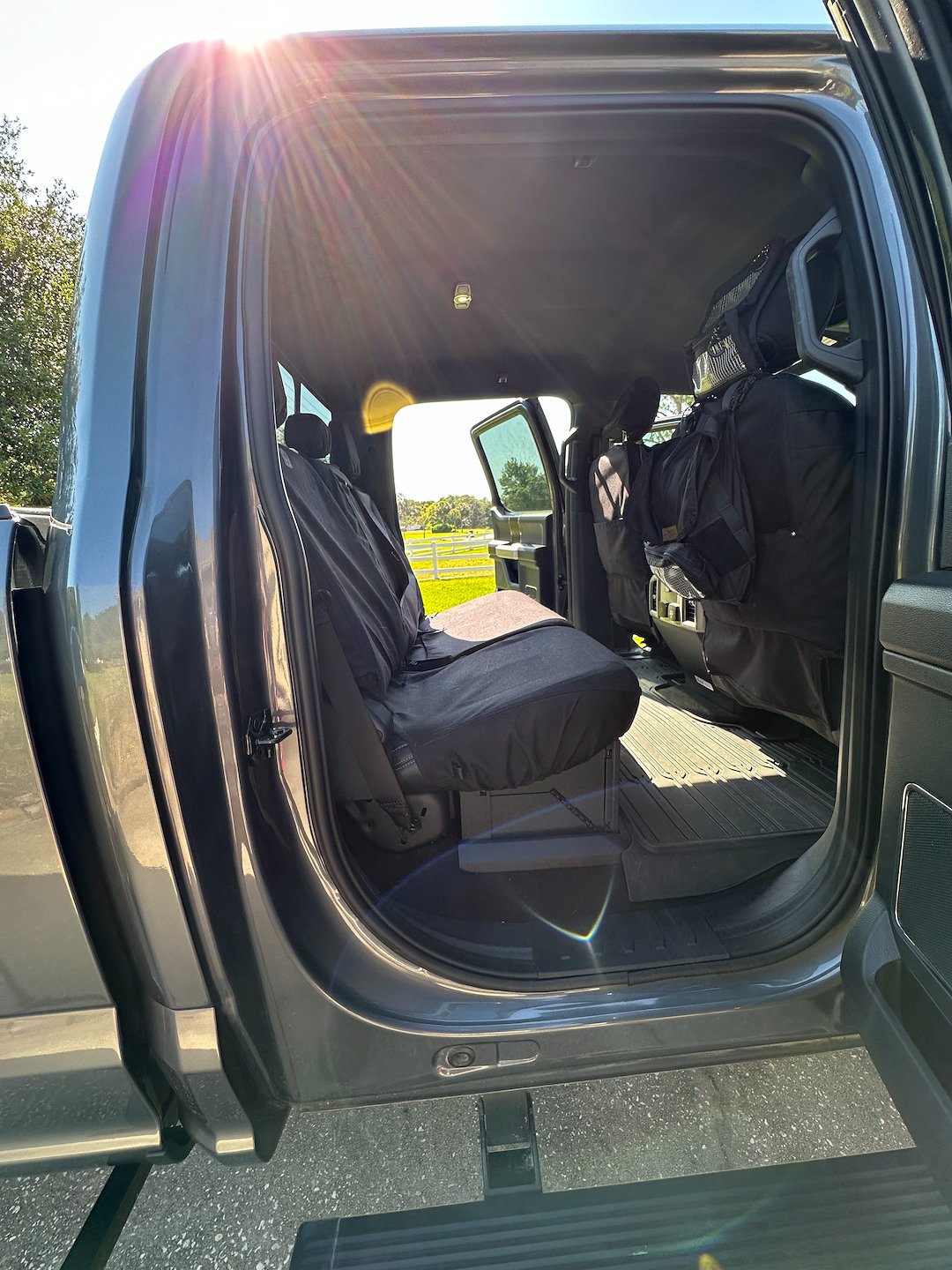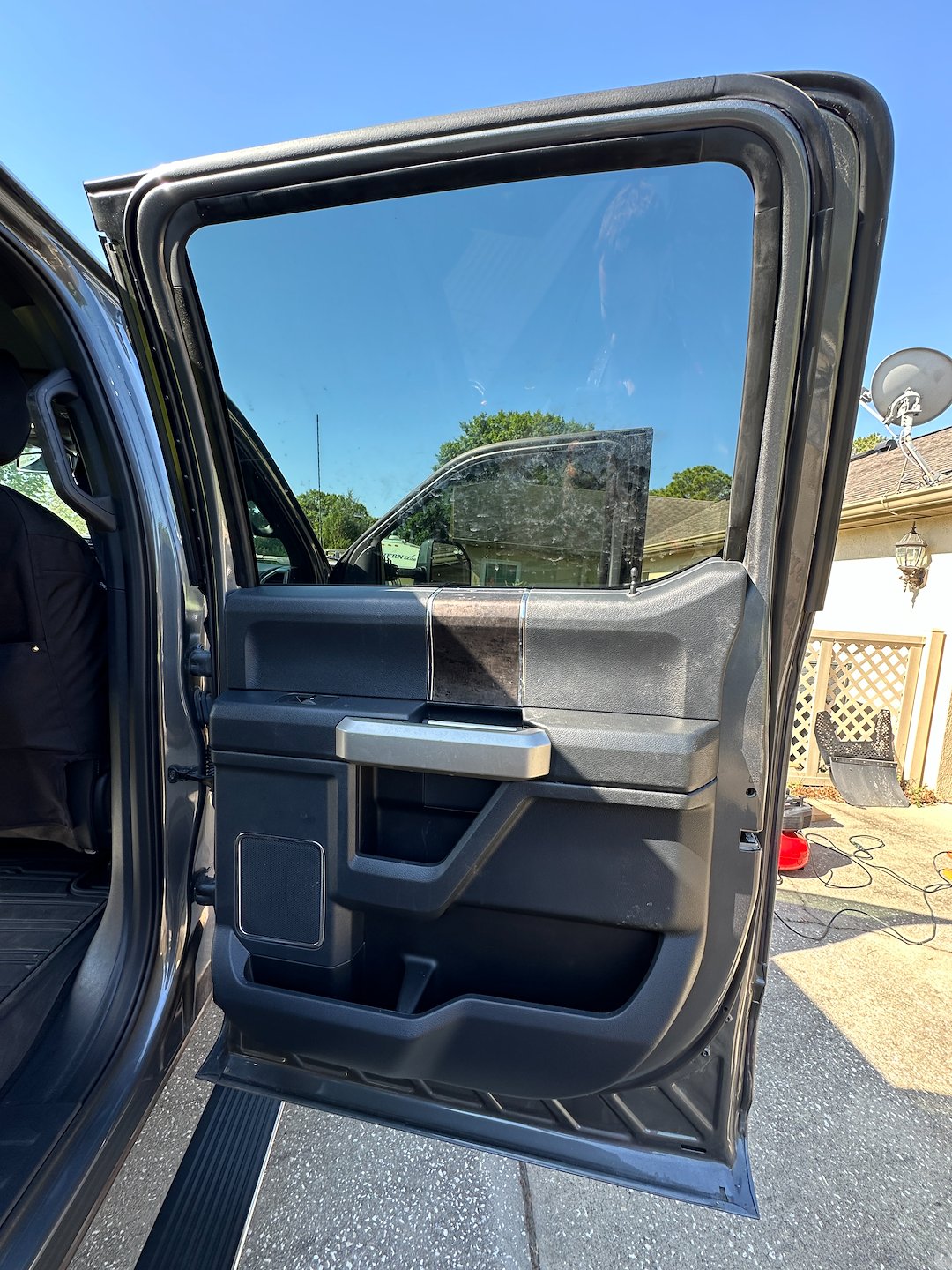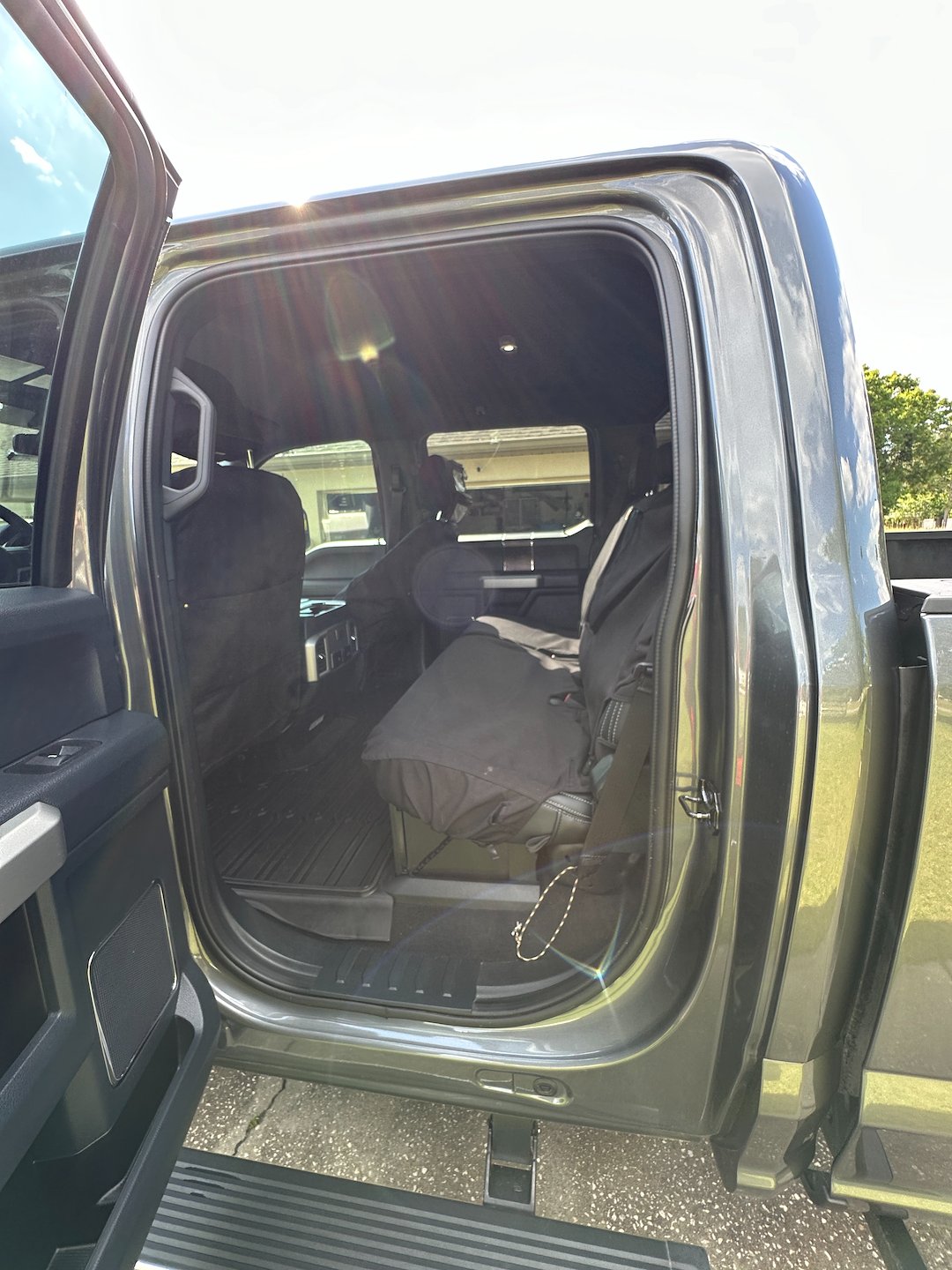 We steamed and wiped every interior surface, conditioned the leather, and dressed the trim until it felt factory-fresh again. Outside, we hand-washed, hand-dried, and applied a premium hand wax for that rich, mirror gloss that water and dirt now slide off of. Tires, rims, and wheel wells got the same attention, restoring the crisp contrast that makes a truck look proud again.